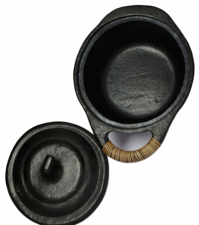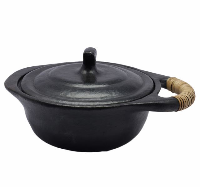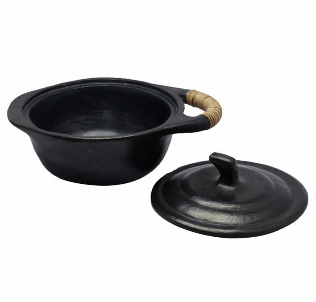 Casserole With Handle: Beautiful handmade Earthenware Clay black pottery Casserole with a stylish lid exquisitely handcrafted in Manipur! Featuring modern design and a classic earthy finish, this Earthenware Clay Casserole works wonders on any kitchen counter top. The raw materials used in making of the longpi black pottery are completely natural since no chemicals or artificial products are used. Ideal for storing your food items, this Earthenware Clay Casserole is free of harmful chemicals and toxic materials. It is perfect for serving in parties and equally good for everyday use. Made in Manipur.
