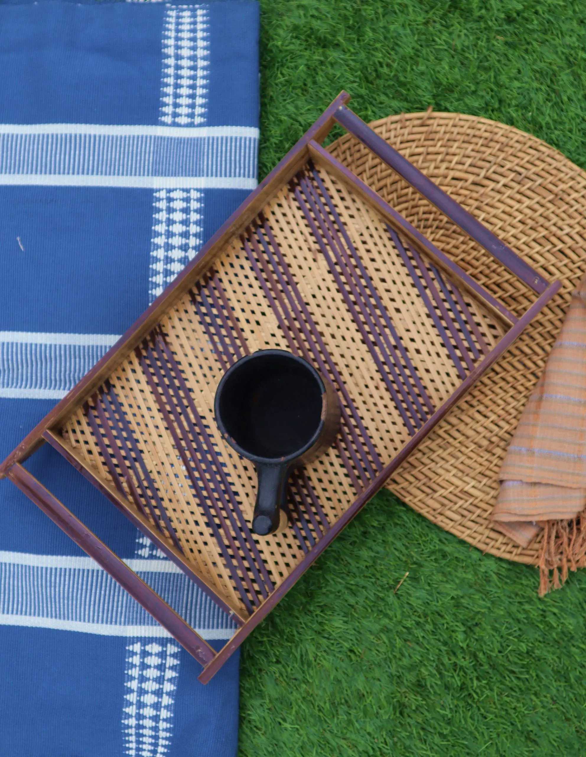 Handcrafted eco-friendly bamboo tray for your kitchenware. This tray is strong and can be used for any kind of utility.